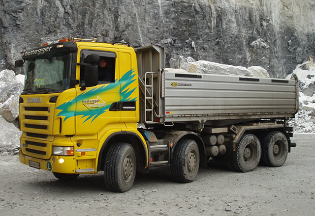 Für das Beladen und den Abtransport von Aushub-, Schotter-, Abbruchmaterialien udgl. stehen Bagger, Radlader, Kippfahrzeuge sowie Abrollkipper mit Kran im täglichen Einsatz. » Zurück